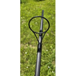 La canne Raptor F 22 est bien équilibré et semble léger à portée de main grâce aux fibres de carbone utilisées en interne et au porte-moulinet légé en carbone 1k-1k avec des entretoises en carbone assorties. La poignée est en caoutchouc rétractable japonais sur toute la longueur et est terminée par un capuchon en aluminium noir gravé Century. La section de crosse et la section de pointe inférieure sont finies dans une surface mate en carbone 1k-1k avec un scellant protecteur PTFE/silicone. Équipé d'anneaux Minima vortex air TICH black 50 .