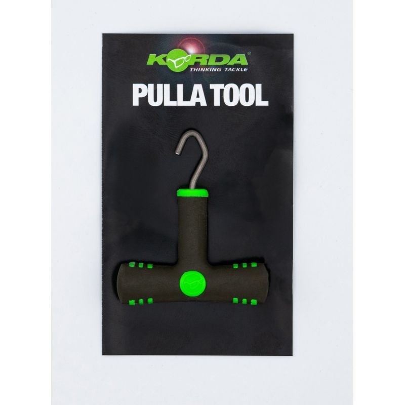 L'outil Pulla offre de nombreuses utilisations, la plus courante étant la réalisation de nœuds. Sa forme en T permet une prise en main très facile et une pression suffisante pour réaliser des nœuds, même sur des bas de ligne épais et rigides. Il est également très utile pour redresser les bas de ligne, surtout lorsqu'on en utilise deux, un à chaque extrémité. L'outil Pulla est équipé d'un hameçon en acier inoxydable très résistant de 2 mm de diamètre, compatible avec l'œillet d'un émerillon de taille 8.