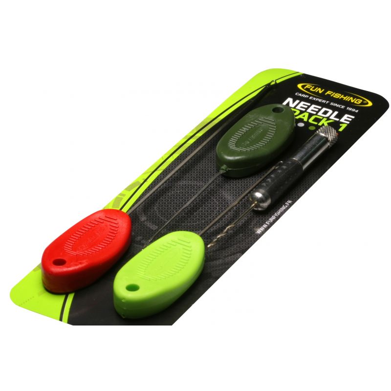 FUN FISHING NEEDLE PACK 1 AIGUILLES ROUGE, VERTE FLUO, KAKI, BOILIE DRILL
