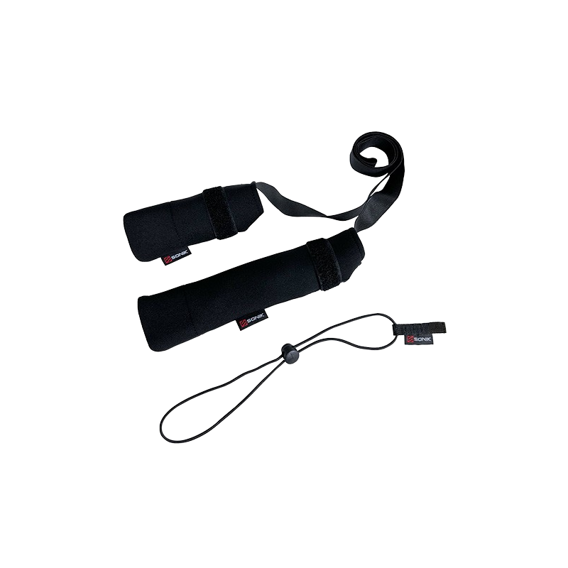 Fabriqués à partir de néoprène épais de 3 mm avec une construction double épaisseur de 6 mm à chaque extrémité, les protecteurs de pointe élastiques Sonik sont idéaux pour protéger les pointes et les crosses de canne pendant le transport. Les sections de pointe et de bout sont reliées par un élastique épais et résistant qui est compatible avec les cannes à deux sections de 9 pieds à 13 pieds. La sangle Velcro à bobine coulissante permet de serrer pour plus de sécurité. Sangle élastique pour moulinet également incluse pour sécuriser la poignée du moulinet une fois pliée.