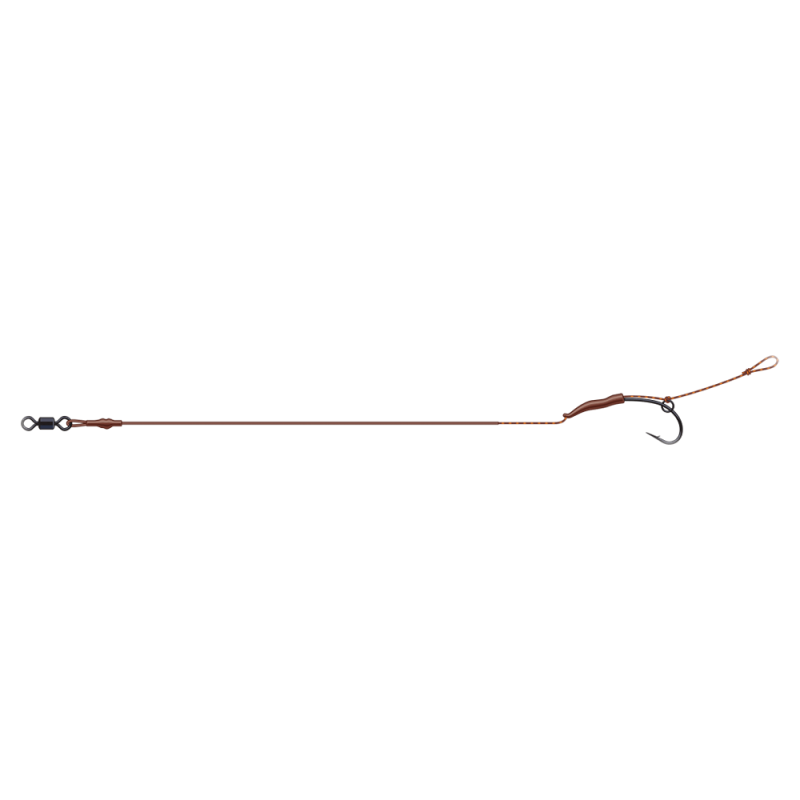 Notez l'association chevelure/anneau du montage. Lorsqu'une carpe essaie de souffler votre appât, le crochet reste dans sa bouche et attrape sa prise. Fabriqué avec un lien à crochet revêtu (20 lb).