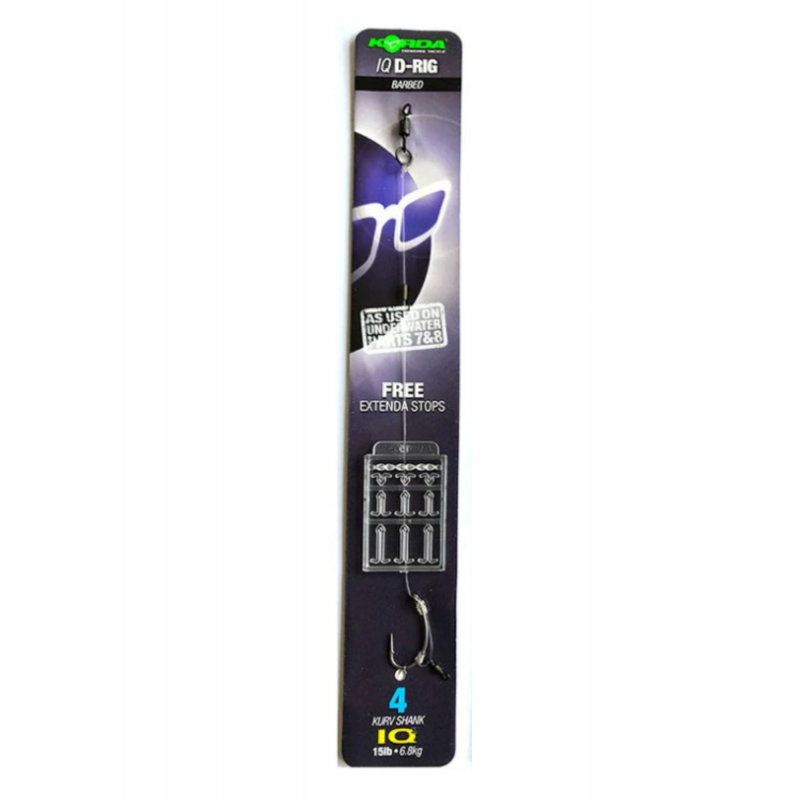 Le montage IQ D-rig n'a pas vraiment besoin d'être présenté : il est le favori de Danny Fairbrass et Ali Hamidi depuis de nombreuses années et a été maintes fois présenté sur Thinking Tackle, Masterclass et Monster Carp. Si vous avez du mal à monter des montages D-rigs parfaits, ces montages prêts à l'emploi sont la solution idéale, car ils sont montés exactement comme Danny ou Ali les monteraient. Ils sont équipés d'un hameçon Kurv Shank pour IQ2, quasiment invisible dans l'eau et suffisamment souple pour se poser parfaitement sur le fond du lac. À l'autre extrémité, un émerillon à anneau de taille 8 assure une grande liberté de mouvement. Chaque montage est fourni avec des Extenda Stops gratuits.
