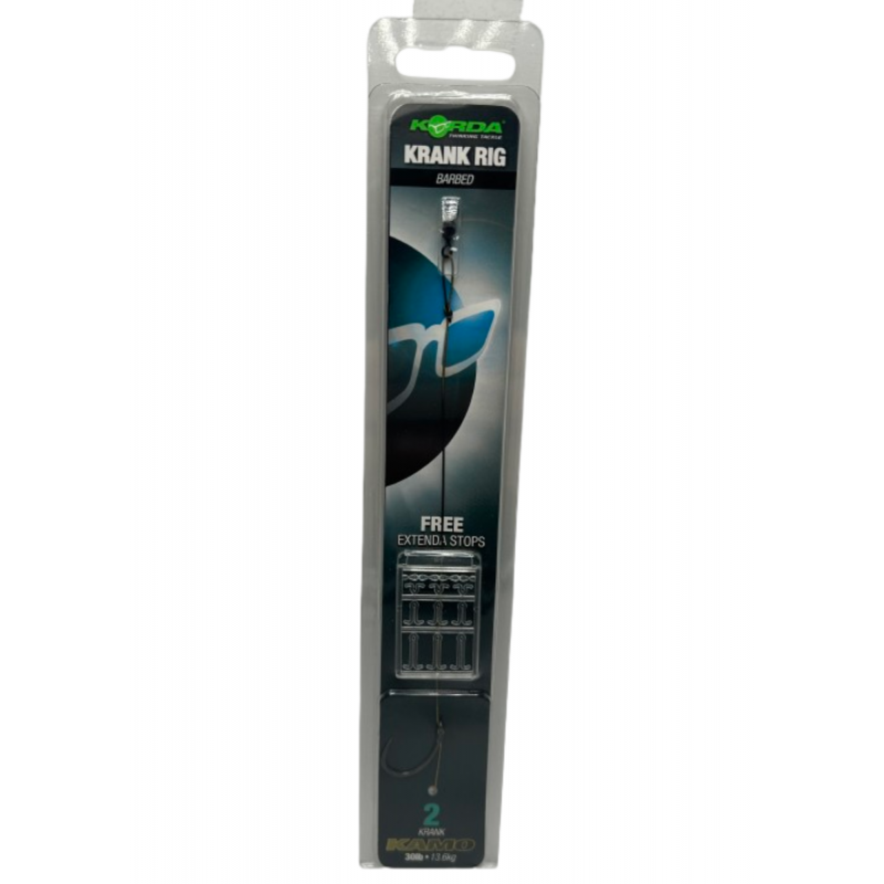 Le montage Krank Ready Rig est un montage prêt à l'emploi simple mais très efficace. Il vous suffit de le sortir de son emballage, de l'attacher au système de plombs de votre choix, d'y placer un appât et de le lancer, l'esprit tranquille : vous utilisez un montage aux excellentes propriétés de ferrage, répondant à des normes rigoureuses. Ce montage est équipé de notre hameçon Krank et d'une tresse enduite de Kamo, dont la résistance à la rupture est adaptée à la taille de l'hameçon utilisé : 13,6 kg pour la taille 2 ; 9,1 kg pour la taille 4 ; et 6,8 et 6,8 et 10. Il s'agit d'un montage simple sans nœud, avec une partie de Kamo dénudée au niveau de l'hameçon pour optimiser sa capacité à se retourner et à s'accrocher à la bouche, et une boucle à l'émerillon assure un montage parfaitement au fond du lac et une action de lancer puissante. Chaque montage est fourni avec des stop-appâts Extenda, permettant ainsi d'utiliser le montage avec des appâts de toutes tailles sur une longueur de cheveu identique. Les montages sont disponibles en versions avec et sans ardillon, un par paquet.