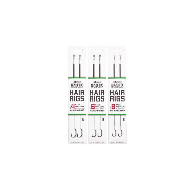Korda Basix Hair Rigs Wide Gape Size 4 Micro Barbed 25lb