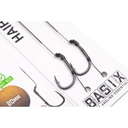 Chaque montage est fourni avec plusieurs Hair Stops et des Extenda Stops de différentes tailles, vous permettant de modifier la longueur du cheveu et d'utiliser des appâts de tailles différentes de celles prévues pour le montage. À l'autre extrémité du montage BASIX Hair, une boucle et un manchon anti-emmêlement BASIX permettent de le fixer rapidement et facilement à un bas de ligne BASIX Lead Clip ou à un pack d'action BASIX Lead Clip (avec émerillons QC).