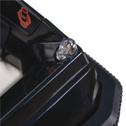 La nouvelle version V2 de ce Vulcan est désormais équipée de garde-herbes intégrés très ingénieux, en naviguant vers l'avant ils s'ouvrent automatiquement, dès que vous naviguez même légèrement vers l'arrière ils se ferment et le ramassage d'herbes ou d'autres choses est immédiatement limité.