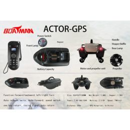 Le bateau Actor V2 est actuellement l'équipement le plus moderne disponible sur le marché. Grâce à sa taille compacte et ses fonctions avancées comme le pilote automatique, l'éclairage LED, avec une portée de 500m, il est devenu le seul leader du marché des bateaux amorceurs dans sa gamme de prix.