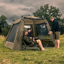 Cet abri multifonctionnel peut être utilisé comme centre social, tente de cuisine ou même comme biwy. Parfait pour les pêcheurs de longue session, il offre suffisamment d'espace pour les activités quotidiennes, ainsi que beaucoup d'espace pour ranger du matériel supplémentaire. Malgré leur grande taille, ces Gazebos sont faciles à assembler et peuvent être installés par une seule personne. Les poteaux télescopiques en aluminium Speedup offrent un cadre robuste et permettent à l'abri de se replier dans une taille compacte et gérable. Les haubans offrent une stabilité supplémentaire dans des conditions météorologiques défavorables. Le tissu en polyester Trakker 210D aide à maintenir le poids total de l'abri vers le bas.