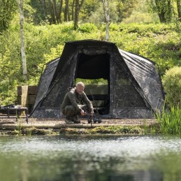 Fourni avec 2 bâtons anti-tempête, des piquets Nash T et un sac de transport à bordure camouflage