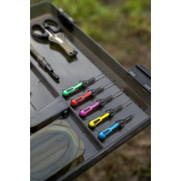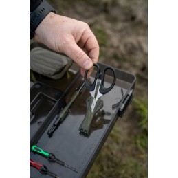 La boîte dispose également d’une poignée de transport intégrée, d’une poignée latérale, de clips de sécurité et d’un joint d’étanchéité, garantissant robustesse et portabilité. Pour plus de praticité, un gabarit de longueur pour le montage des bas de ligne est inclus.