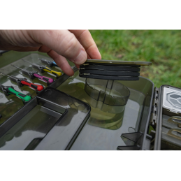 Ses compartiments BLOX dimensionnés avec précision permettent de ranger bobines de fil, paquets d’hameçons et accessoires essentiels. Le compartiment principal modulable grâce à des séparateurs offre une flexibilité totale pour vos montages. Le couvercle intègre deux compartiments BLOX peu profonds pour protéger vos bas de ligne pré-montés des intempéries.