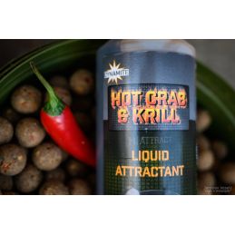 Nouveauté 2023, l'attractif liquide assorti pour les bouillettes Hot Crab & Krill. Conçu pour fournir une attraction supplémentaire lors de l'enrobage des bouillettes et des appâts ou de l'ajout aux mélanges de spods et aux sacs PVA.