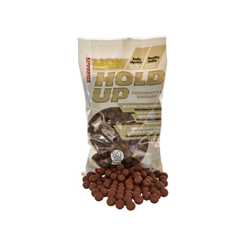 Les 'HOLD UP' sont des appâts associant divers ingrédients issus du milieu naturel et marin, source de nourriture naturelle recherchés par les carpes dans leur écosystème. Hautement digestes, ces appâts diffusent instantanément un message attractif sur les zones amorcées, calquant ainsi celui émis par les différents éléments composant l'alimentation des carpes. Ces appâts 100% naturels permettent de maintenir très longtemps les poissons sur les zones amorcées sans aucune méfiance et ont un impact particulièrement fort sur les gros poissons. Les « HOLD UP » sont tout à fait adaptés à des amorçages en spots et /ou de long terme (ALT) et cela quelle que soit la température de l'eau.