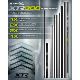 Pack canne XTR300 Ultra Power 13m Canne 13m XTR300 2x kits competition Standard (incluant celui dans la canne) 2x kits power standard 1x Kit coupelle Twist lock un set de coupelles à amorce 1x Mini extension (inclus dans les 13m) Un fourreau XTR holdall.
