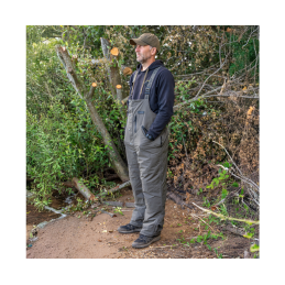 La combinaison est équipée de bandes de serrage Velcro aux poignets et chevilles, ainsi qu’un resserrage à l’arrière de la veste pour réduire les courants d’air et maximiser la chaleur corporelle. Les genoux et l’assise de la salopette sont renforcés, offrant durabilité et résistance lors des longues sessions de pêche.