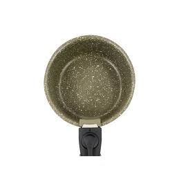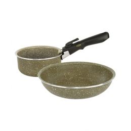 La variante moyenne est livrée avec une casserole de 18 cm Ø x 7,8 cm, une poêle à frire de 24 cm Ø x 5 cm et une poignée amovible