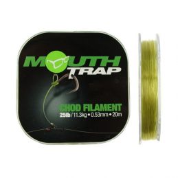 Ce matériau de bas de ligne a été spécialement conçu pour les montages chod, les montages rigides à charnière et les montages combinés. Il possède une mémoire de forme très élevée, lui permettant de prendre des courbes. Il peut être facilement tiré droit sans avoir besoin de le vaporiser et manipulé pour créer une courbe, sans revenir en position droite comme le font de nombreux matériaux rigides – ce qui le rend si adapté aux montages chod et rigides à charnière. Sa teinte verte lui permet de se fondre dans le fond du lac et il est disponible en résistances de 15 lb, 20 lb ou 25 lb, pour s'adapter à toutes les situations de pêche et à tous les types de montage. Chaque bobine contient 20 m de Mouth Trap.