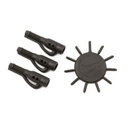 Pour forcer l'éjection du plomb en cas d'accrochage, utilisez les broches fournies pour insérer l'émerillon ou le Kwik Link dans le clip. Cela verrouillera le clip et permettra l'éjection du plomb. Compatible avec tous les élastiques de queue de la gamme Korda, assurez-vous que le clip est humide avant d'appuyer dessus et, pour la sécurité des poissons, ne jamais enfoncer complètement le élastique de queue.