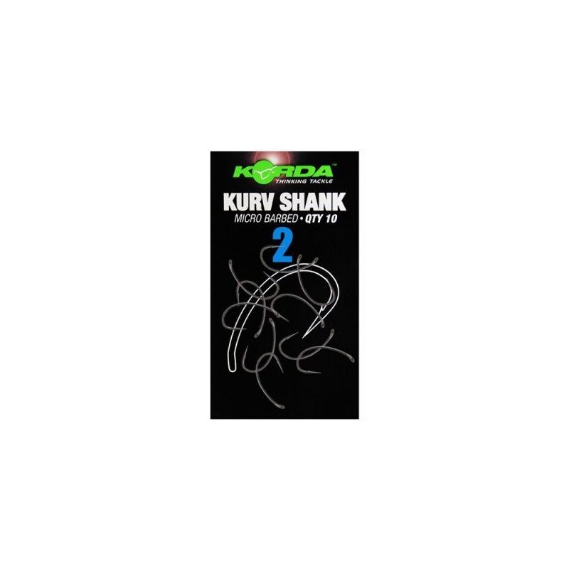 Le Kurv Shank est un hameçon très polyvalent, utilisable avec des montages pop-up et de fond, y compris des montages populaires comme le KD et le IQ D-rig. Son ferrage est excellent grâce à son œillet fortement rentré et sa hampe courbée, qui lui permettent de se retourner et de s'accrocher à la bouche, même sans gaine thermorétractable ni hameçon. Sa longue pointe acérée améliore également son potentiel de ferrage. Il est également disponible en version sans ardillon. Pour les pêcheurs en conditions extrêmes, notamment en Europe, un Kurv Shank XX est disponible, de même forme et aux mêmes propriétés, mais avec un fil beaucoup plus épais. Ils sont livrés avec dix dans un paquet.