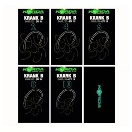Ce modèle connaît un succès phénoménal depuis sa création par Tom Dove en 2014. Il a permis de capturer d'innombrables gros poissons, tant en Thaïlande qu'à l'étranger, et même des monstres d'autres espèces dépassant largement les 45 kg en Thaïlande. Sa forme unique se caractérise par une ouverture très large, une hampe assez courte et courbée et un œillet légèrement rentré. Cet effet rentré est accentué par la forme de la hampe et sa forme arrondie vers l'œillet. La pointe, légèrement becquée, est décalée, ce qui lui permet de s'enfoncer facilement dès la prise initiale. Ces hameçons sont très résistants et dotés d'un micro-ardillon qui ne gêne pas la pénétration, mais assure une bonne tenue de l'hameçon une fois en place. Une version sans ardillon est également disponible. Le Krank s'utilise avec une grande variété de montages et se révèle incroyablement efficace, même avec un simple nœud sans nœud. Il peut également être utilisé sur des montages plus complexes, comme le montage Spinner Rig, que Tom Dove affectionne particulièrement. Il existe également une version Krank X plus robuste, conçue pour les pêches en eaux très herbeuses ou encombrées, ou pour les pêches en eaux continentales plus extrêmes. Chaque paquet contient dix hameçons, avec ou sans ardillon, en différentes tailles : 2, 4, 6, 8 et 10, plus une taille 1 pour la version Krank X.