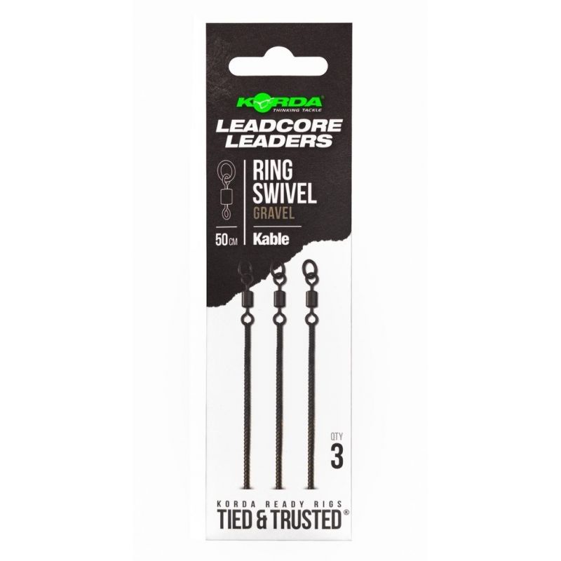 Korda Kable Leadcore Leaders Ring Swivel Gravel 50cm 3pcs