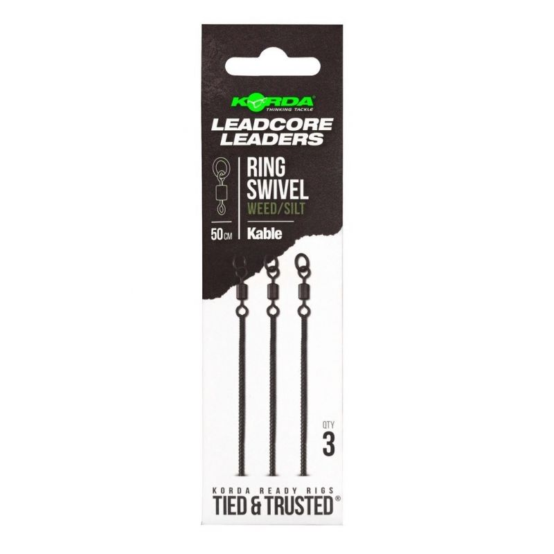 Korda Kable Leadcore Leaders Ring Swivel Weed 50cm 3pcs