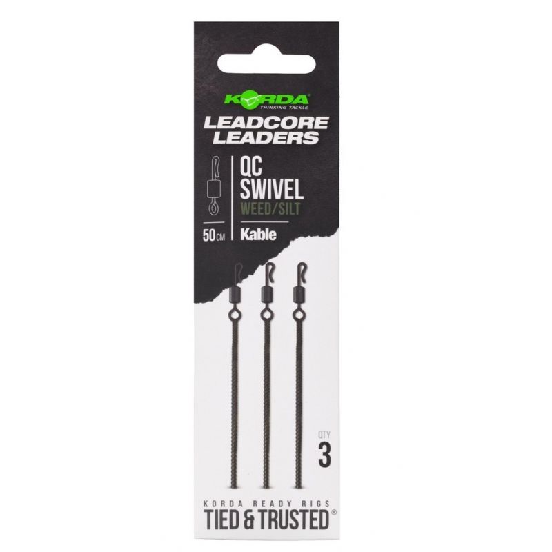 Korda Kable Leadcore Leaders QC Swivel Weed 50cm 3pcs
