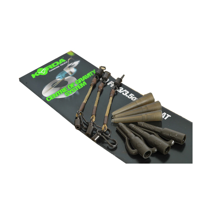 Nos plombs COG sont conçus pour une pêche spécifique, afin que le poisson perçoive le mouvement le plus rapidement possible. C'est pourquoi on les appelle plombs « Centre Of Gravity ». Pour une efficacité optimale, utilisez des bômes à système Centre Of Gravity. Les plombs COG sont conçus pour être utilisés avec un Lead Clip et une bôme, fabriquée en leadcore épissée, dotée d'un émerillon à une extrémité qui se fixe à votre corps de ligne et s'insère dans le nez du Lead Clip. À l'autre extrémité de la bôme se trouve un émerillon spécial dont l'œillet inférieur est retiré, permettant au corps de ligne de s'insérer parfaitement dans l'œillet central du plomb COG, et un Kwik Link fixé à l'œillet facilite la fixation de votre bas de ligne.