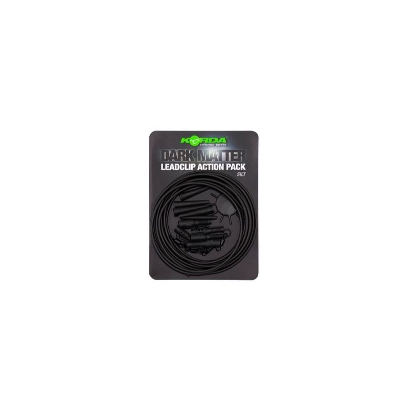 Les packs action Korda sont conçus pour vous offrir tous les éléments nécessaires à une installation spécifique, le tout dans un seul pack. Le pack action Dark Matter Lead Clip vous permet de créer cinq montages complets avec clip plomb, tube compris, avec la possibilité de les pêcher en position fixe ou semi-fixe en insérant la goupille de retenue dans le clip plomb pour y fixer l'émerillon.