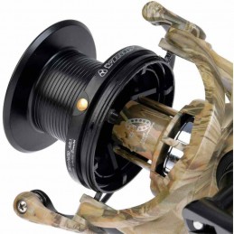 Moulinet Baitfeeder pour la pêche à la carpe et le lancer long dans un design compact mais avec une grande capacité de ligne. Système de distributeur d'appâts à libération de bobine. Corps et rotor en graphite résistant à la corrosion. Conception de rotor ultraléger. Bobine en aluminium à longue course (plus de 40 mm de hauteur d'enroulement) pour améliorer l'efficacité de la coulée. 5 roulements à billes + 1 roulement anti-retour infini. Anti-rebond à réglage rapide. Système de freinage microréglable progressif rapide: en virage à 180º.
