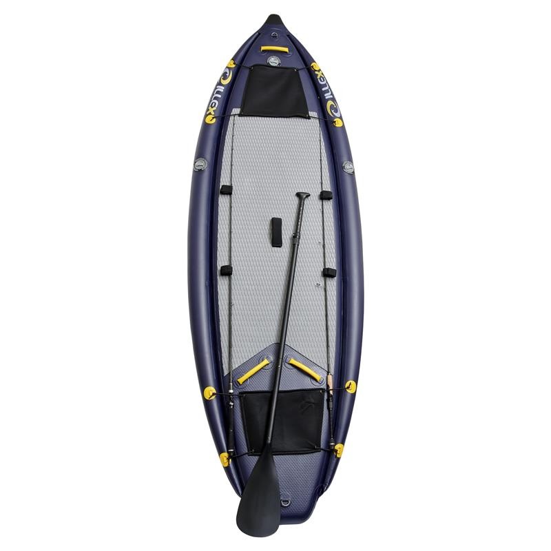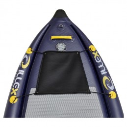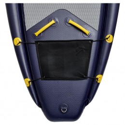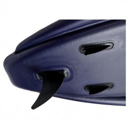 Finitions : Ce modèle se caractérise par de nombreux détails, 1 compartiment principal gonflable (plancher, Dropstitch PVC double couche pour une rigidité optimale) avec une valve de gonflage avec sécurité et revêtu d'un tapis anti dérapant en mousse EVA de 5mm. Le plancher indépendant est combiné à 2 flotteurs latéraux équipés chacun d'une valve de gonflage avec sécurité. Deux filets (un à l'avant et l'autre à l'arrière) ont été pensés pour sécuriser votre bagagerie et vos accessoires. A cela s'ajoute 10 anneaux D soudés en inox résistant à la corrosion pouvant servir de point d'attache, 4 poignées de transport facilitant la manipulation, 2 paires de bandes scratch velcro disposées sur le plancher permettant de ranger vos cannes ou votre pagaie, 2 petites dérives fixes et 1 grande dérive amovible.Couleur : Bleu marine.