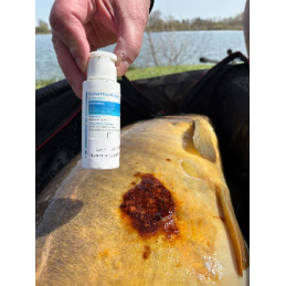 Pour le soin de plusieurs plaies, il est possible d’utiliser un pulvérisateur fin avec de l’eau pour faire gélifier la poudre tout en maintenant le poisson hors de l’eau. En tant que produit désinfectant l’application doit être répétée de manière fréquente si la situation le permet, pour une continuité de ses propriétés antiseptiques.