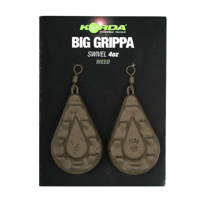 Ces plombs sont parfaits pour toutes les situations où vous avez besoin d'un plomb plus adhérent au fond grâce à leur surface cloutée. Le Big Grippa est donc idéal pour une utilisation en rivière, pour les montages de bateau à grande distance où le courant de fond peut être problématique, et pour lancer sur n'importe quelle pente, comme le bord d'une île ou un banc de gravier, car ils restent bien plus facilement en place que d'autres plombs. Outre la pêche à la carpe, au Royaume-Uni comme sur le continent, le Big Grippa est également très apprécié des pêcheurs de barbeaux et de chevesnes. Disponible en 30 g, 42 g, 50 g, 80 g, 110 g, 140 g, 170 g, 225 g et 280 g.