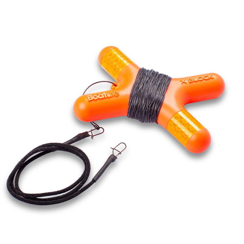 Possède un clip pour bloquer le cordon, le X Block s'ajuste facilement. Le cordon est élastique pour permettre au marqueur de rester en place même en cas de grosses vagues ou si le niveau d'eau monte.