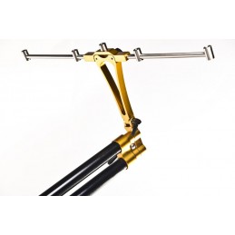 Le tube central est doté de deux bras télescopiques qui permettent de l'étendre à volonté, ainsi que de basculer de haut en bas grâce à la régulation centrale en serrant ou en ouvrant une poignée de porte.