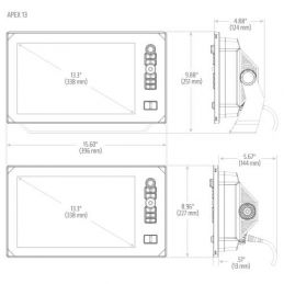 FULL HD DISPLAYL’écran Ultra Haute Définition de 1920 x 1080 permet aux utilisateurs de voir les images du sondeur et les cartes avec des détails incroyables, permettant de ne pas pas passé à côté du moindre détail, avec 3 tailles d’écran au choix allant de 13 “, 16” à l’énorme 19 “. L’interface Cross Touch ™ d’APEX est alimentée par un puissant processeur double coeur qui offre un contrôle intuitif ultra-rapide, ainsi que la personnalisation des fonctionnalités à partir de l’écran tactile ou des touches programmables.Grâce à sa conception d’écran ultra plat, l’APEX offre un look élégant et personnalisé lorsqu’il est monté dans le tableau, avec le choix de montage sur support ou encastré dans le tableau de bord.