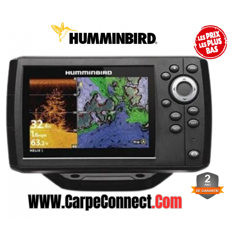 La série HELIXⓇ 5 propose un écran couleur panoramique de 5" sans compromis. Ce modèle HELIX 5 CHIRP GPS G3 comprend un sondeur Down Imaging et Dual Spectrum CHIRP 2D, un GPS interne avec carte de base Humminbird et AutoChart Live intégré.