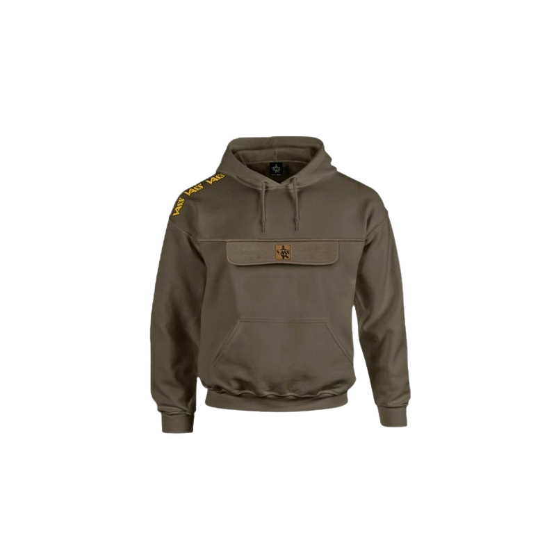 Présentation du nouveau sweat à capuche Vass-Culture doté d'une poche poitrine avec fermeture éclair, de poches pour les mains, d'une capuche double épaisseur et d'un revers en tissu polaire brossé pour plus de chaleur et de confort.