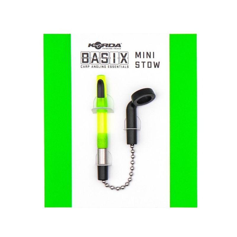 Il est équipé d'un lest en acier inoxydable, mais les Overweights de 6 g et 8 g, vendus séparément dans la gamme Stow, peuvent également être utilisés avec. Le Basix Mini Stow peut être équipé d'un Mini Isotope (disponible en sept coloris) et se fixe sous votre détecteur de touche à l'aide d'un bâton de hockey moulé, dans lequel se visse la chaîne à billes. Il est disponible en rouge, vert ou bleu.