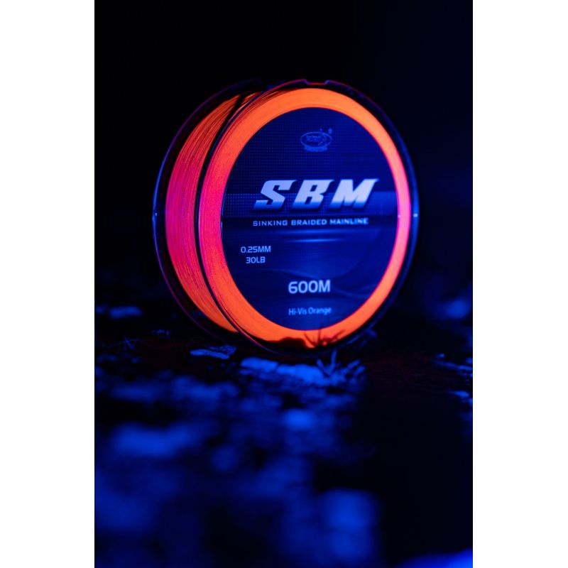 Tresse à immersion rapide de couleur orange. Sa vitesse d'immersion rapide et sa résistance à la rupture élevée sont obtenues grâce à l'utilisation d'une combinaison innovante de fibres Tualon et à immersion rapide d'une densité de 1,52. La tresse SBM offre une résistance élevée à l'abrasion et un diamètre fin, permettant d'enrouler plus de mètres sur votre moulinet pour pêcher à très longue distance. La sensibilité maximale et le faible allongement à longue distance sont obtenus grâce au tissage très dense des fibres.