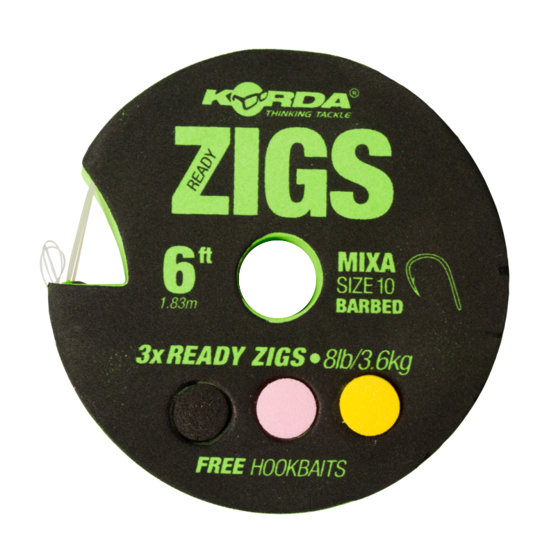 Ces montages zig prêts à l'emploi sont incroyablement pratiques et ont été fabriqués selon des normes rigoureuses, ce qui les rend aussi performants que tout ce que vous pouvez monter vous-même ! Ces montages sont parfaits pour les débutants en zig, ou pour ceux qui préfèrent dérouler la longueur de zig souhaitée de la bobine EVA fournie, puis la réenrouler en fin de session si l'hameçon est encore piquant. Quatre longueurs différentes sont disponibles pour répondre à différentes situations – 3,6 m, 3 m, 2,4 m et 1,8 m – et se montent tous avec un hameçon Mixa de taille 10 et une ligne de 3,6 kg, avec une boucle à l'autre extrémité pour chaque fixation à un émerillon QC ou similaire. Chaque bobine EVA est également livrée avec trois appâts en mousse de couleurs différentes, vous avez donc tout le nécessaire pour lancer ! Chaque bobine contient trois montages zig, avec ou sans ardillon.