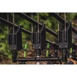 Les alarmes sont couplées en usine au récepteur, une première innovation dans l'industrie qui signifie qu'il vous suffit d'ajouter une batterie et vous êtes prêt à aller pêcher ! Une meilleure résistance aux intempéries a été obtenue grâce à une collaboration avec un important fabricant de revêtements imperméables, en utilisant de nouveaux matériaux synthétiques et des techniques d'assemblage améliorées pour une résistance supérieure aux intempéries.