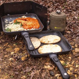 RIDGE MONKEY CONNECT DEEP PAN GRIDDLE XL GRANITE EDITION Le set casserole + poêle Connect XL Granite Edition est équipé de poignées “soft touch” démontables, et de charnières détachables qui transforment votre casserole en deux ustensiles différents : une casserole à bords profonds, et une poêle à fond strié pour viandes, oeufs et autres.La poêle à fond...