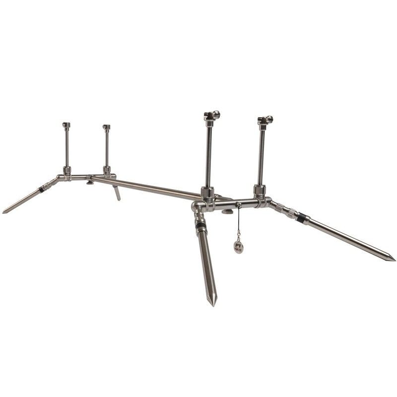 SONIK STANZ 4 ROD POD Les Rod Pod STANZ sont conçus pour affronter n'importe quel terrain et garder vos cannes stables. Adaptabilité ultime et construction tout en métal durable. Avec trois angles de jambe, vous pouvez avoir vos tiges basses ; presque vertical ou quelque chose entre les deux. Les positions des jambes sont réglables sur toute la longueur...