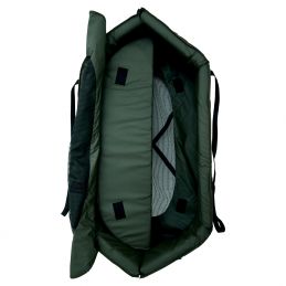 MATELAS DE RECEPTION ABSOLUM Dimensions: 120 x 70 x 40-50cm Pieds réglables Aluminium renforcé = solidité Matelas rembourré = protection des carpes Livré avec sac de transport + poche sur coté